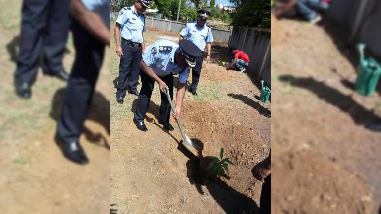 Après son discours, Mario Nobin a mis en terre un manguier dans le jardin du poste de police de Baie-du-Tombeau avant de distribuer des plantes décoratives et médicinales.