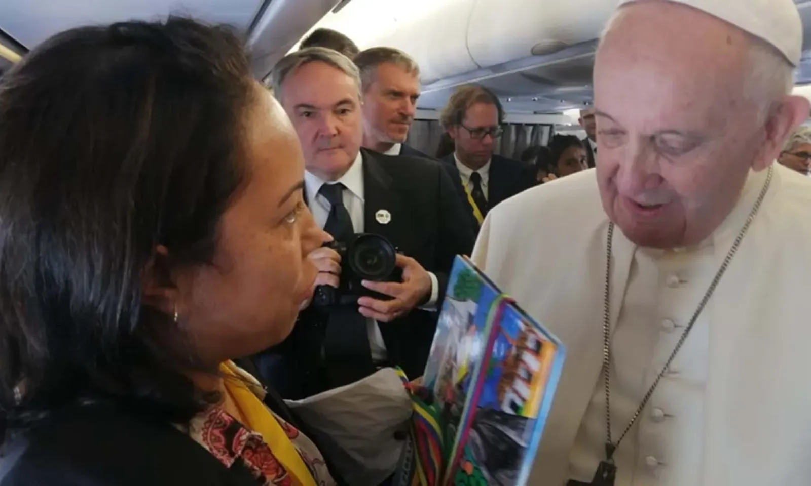 Elle a personnellement rencontré le pape François à bord de l’avion à destination du Mozambique ce mercredi 4 septembre.