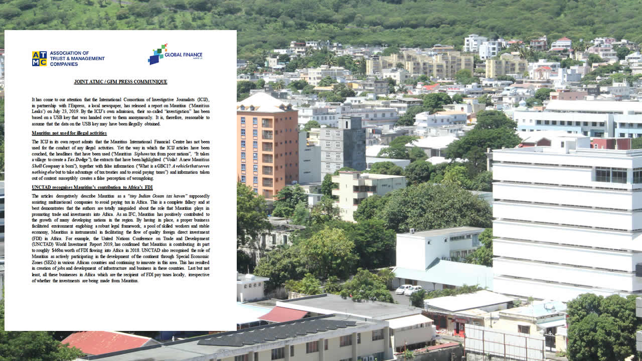 Le secteur du Global Business passe à l’offensive suite à la publication des Mauritius Leaks. Dans un communiqué conjoint, l’Association of Trust & Management Companies (ATMC) et la Global Finance Mauritius (GFM) questionnent les motivations de l’International Consortium of Investigative Journalists (ICIJ). « Le consortium a lui-même reconnu que les documents mis en circulation ne révèlent strictement d’aucune activité illégale dans le Global Business mauricien », soutiennent les deux associations. Celles-ci remettent en cause le bien-fondé « de la soi-disant enquête » de l’ICIJ.