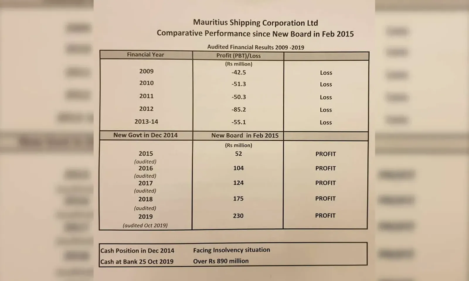 La MSC est en mesure de financer la construction d’un navire cargo de Rs 700 millions sans avoir recours aux prêts. Elle puisera de ses réserves qui s’élevaient à la fin d’octobre à Rs 890 millions. Ces réserves ont été accumulées grâce à une succession de profits depuis 2015. Ils vont en s’augmentant de Rs 52 millions en 2015, Rs 104 millions en 2016, Rs 124 millions en 2017, Rs 175 millions en 2018 et Rs 230 millions l’année dernière. Auparavant, la MSC n’accumulait que des pertes, Rs 42,5 millions en 2009, Rs 51,3 millions en 2010, Rs 50,3 millions en 2011, Rs 85,2 millions en 2012 et Rs 55,1 millions en 2013-2014.