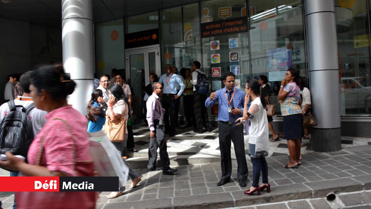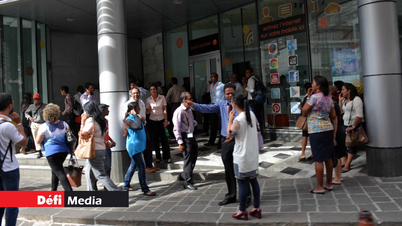Scène inhabituelle mercredi après-midi 4 novembre à la Mauritius Telecom Tower à la rue Edith-Cavell, Port-Louis, où tous les membres du personnel ont été évacués après une panne d’électricité.