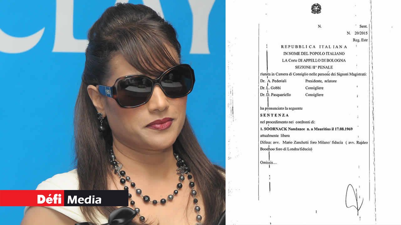 La femme d’affaires mauricienne a obtenu gain de cause devant la justice italienne. Le tribunal de Bologne a rendu son verdict jeudi 15 septembre : il a rejeté la demande des autorités mauriciennes qui réclamaient l’extradition de Nandanee Soornack vers l’île Maurice.