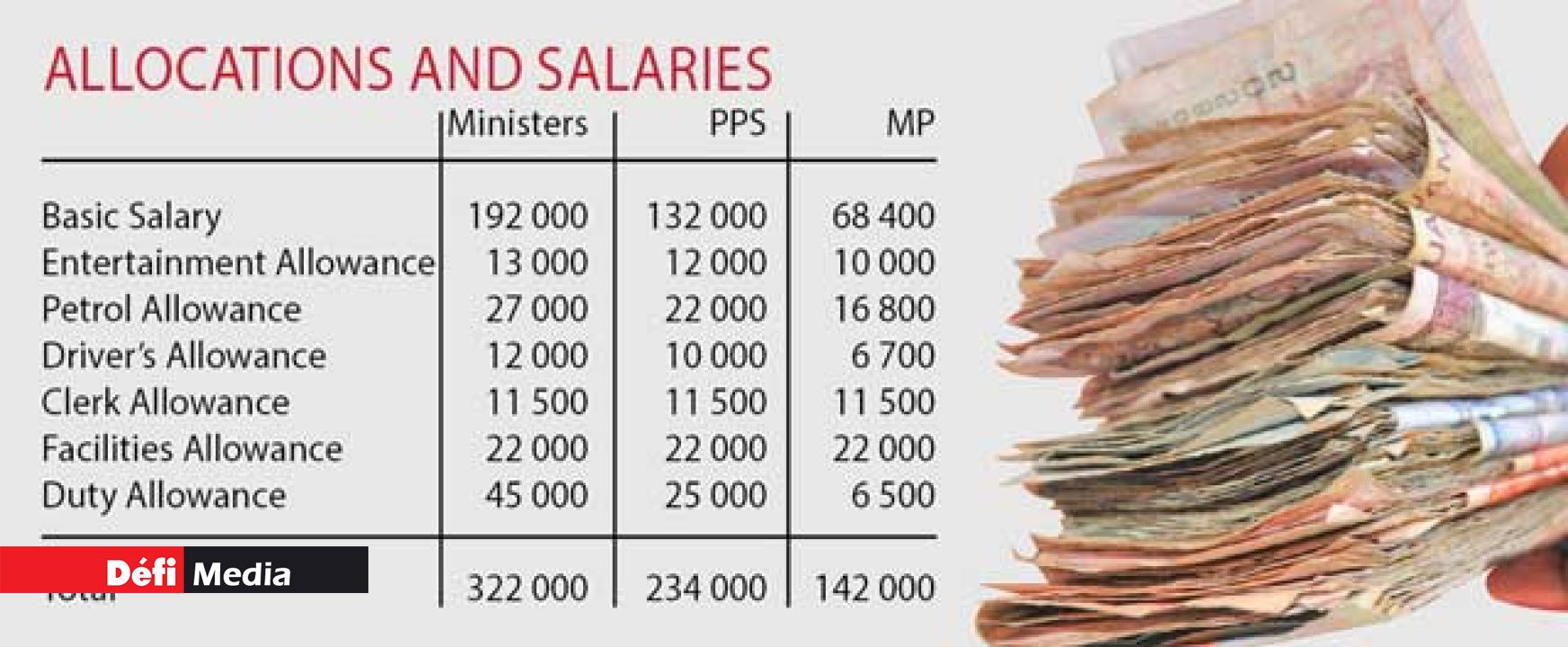 The Deputy Prime Minister, Xavier Luc Duval stated during a rally of his political party – the PMSD – on Sunday, that members of parliament should work for their money’s worth. How much does an MP earn? Their basic salary amounts to Rs 68,400 per month and with the added benefits, it comes to Rs 142,000. Which is far from small change for the taxpayer. Over and above their earnings, MPs are also entitled to work full-time on a different job.