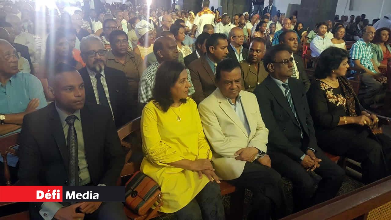 Cette messe s'est déroulée en présence de plusieurs personnalités, dont la présidente de la République Ameenah Gurib-Fakim, le vice-président de la République Barlen Vyapoory, le Premier ministre adjoint Ivan Collendavelloo, et les anciens Présidents, Karl Offman et Cassam Uteem. Le Premier ministre Pravind Jugnauth n'a pu faire le déplacement car il est souffrant.