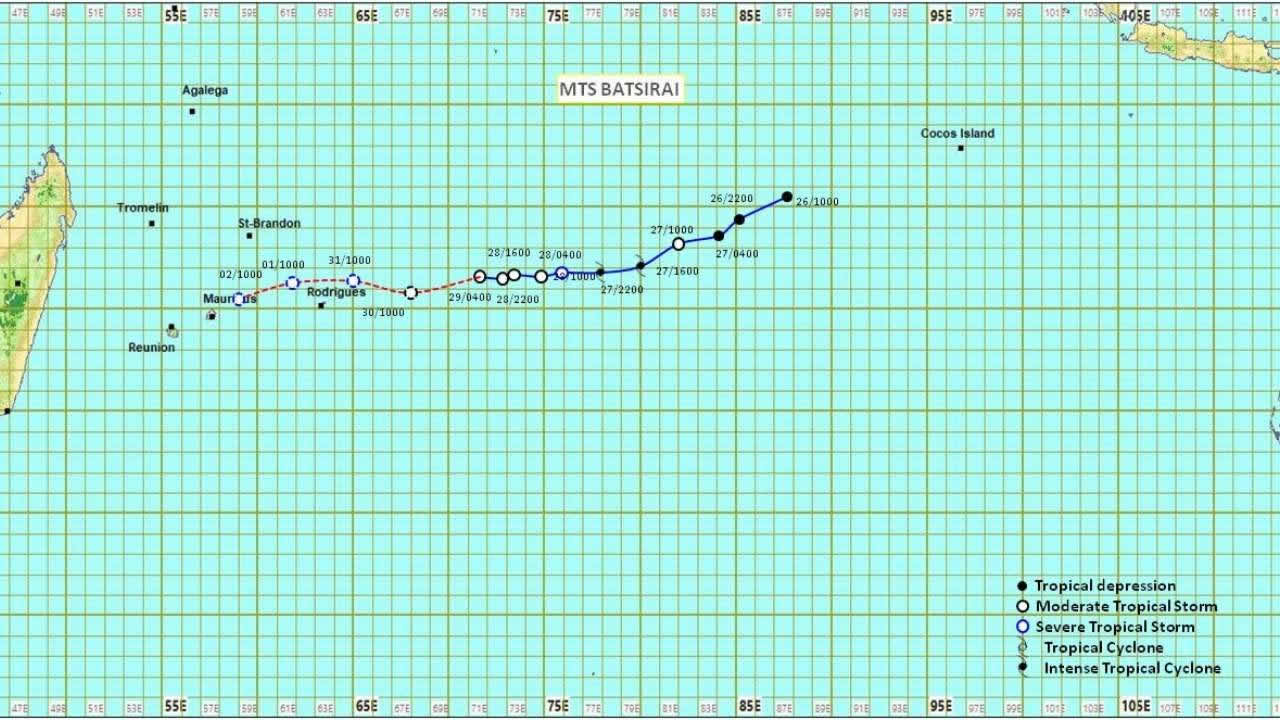 Elle se déplace dans une direction générale de l'ouest à environ 20 km/h. À 04 h 00 la tempête tropicale modérée Batsirai était centrée autour du point 18,4 degrés sud en latitude et 71,5 degrés est en longitude, soit à environ 1 460 km à l'est-nord-est de Maurice. C’est ce qui ressort du bulletin de la station météorologique de Vacoas émis ce matin.