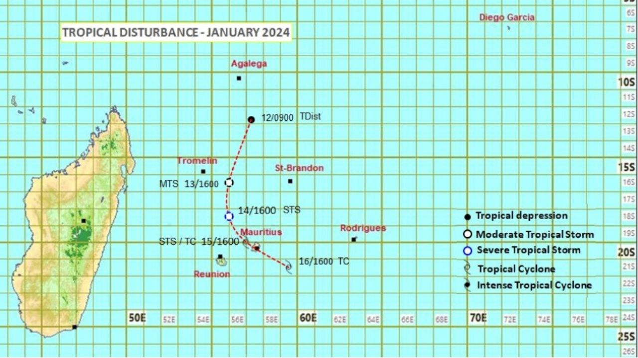 Selon les prévisions du service météorologique, le système devrait s'intensifier progressivement. D'après les dernières observations météorologiques, la perturbation tropicale se situe à environ 780 km au nord-ouest de Maurice. Si elle maintient sa trajectoire actuelle, il est possible qu'elle traverse directement l'île Maurice d'ici le lundi 15 janvier.