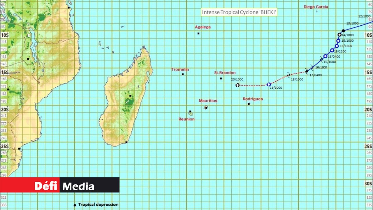 Le cyclone tropical Bheki a gagné en intensité pour devenir un cyclone tropical intense. À 04h00 ce matin, il était positionné autour du point 15,5 degrés sud en latitude et 71,1 degrés est en longitude, soit à environ 1 520 kilomètres à l’est-nord-est de Maurice. Il se déplace en direction du sud-ouest à une vitesse d’environ 15 km/h, indique la station météorologique de Vacoas dans son bulletin émis ce matin.