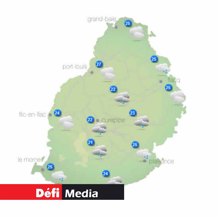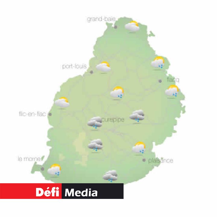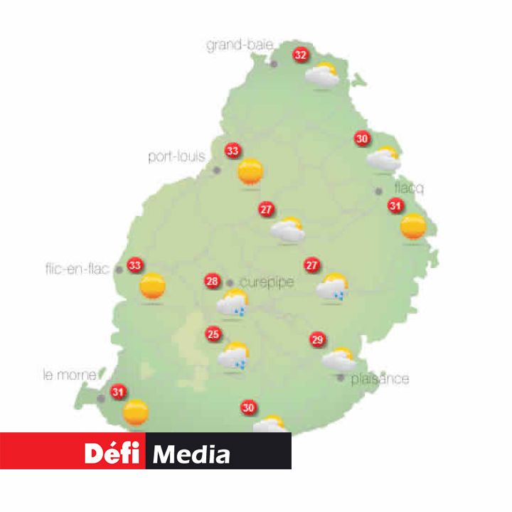Dans les autres parties du pays, le temps sera ensoleillé. La température maximale variera entre 25 et 28 degrés Celsius sur le Plateau central et oscillera entre 29 et 33 degrés Celsius sur le littoral, indique la station de Vacoas.