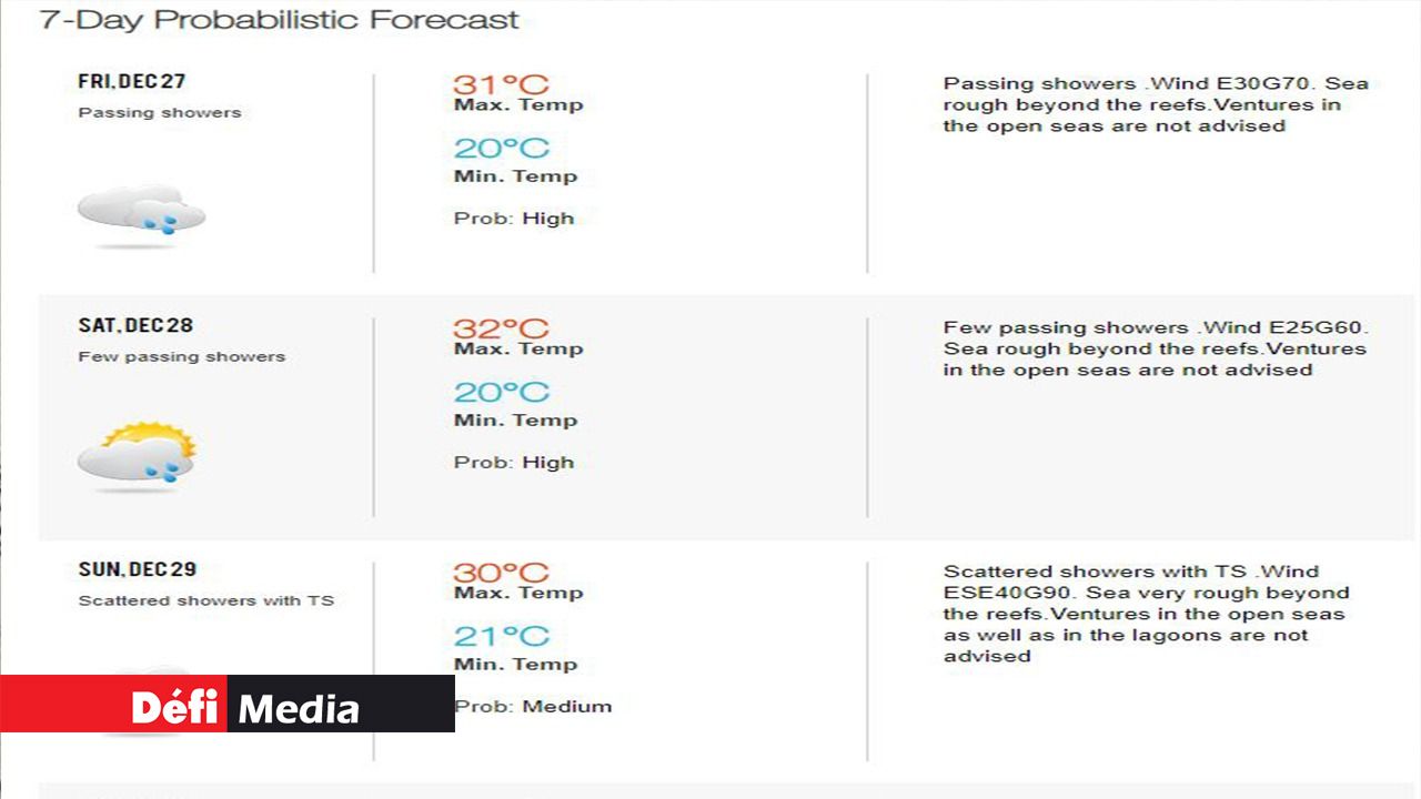 Voici les prévisions de la station météorologique de Vacoas pour les sept prochains jours :