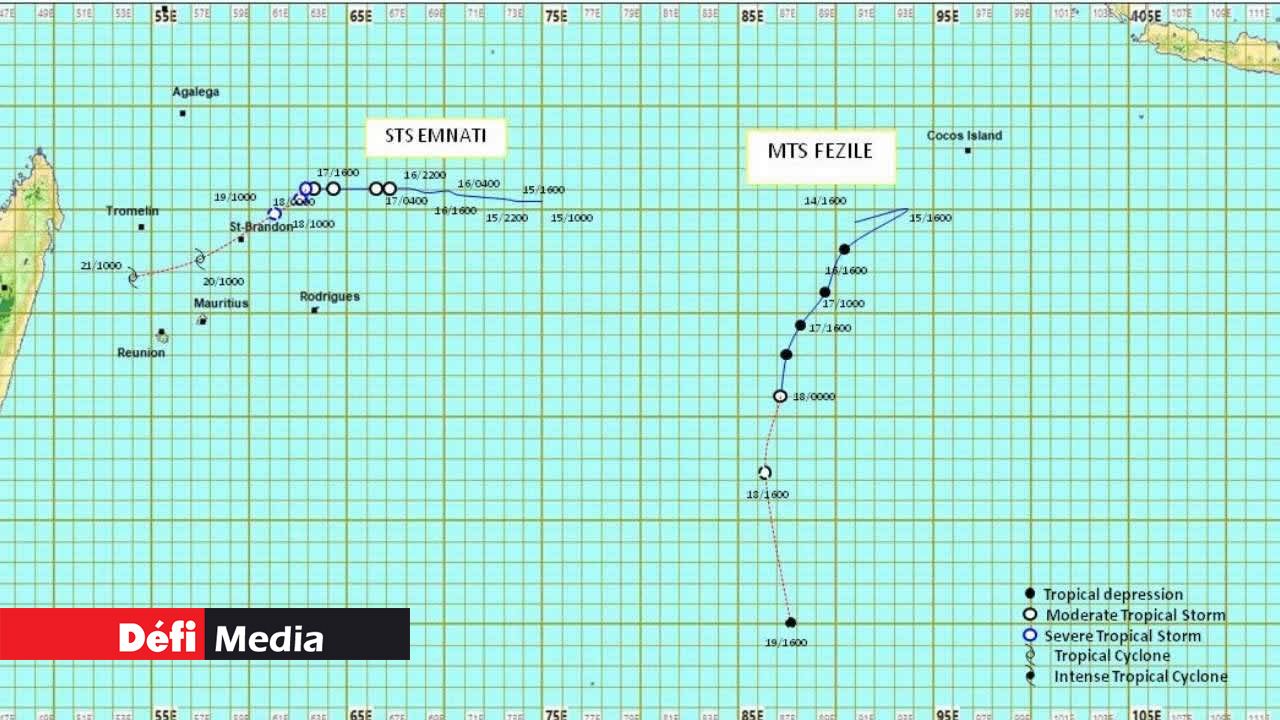 Pour ce qui est de la situation à Rodrigues, l’alerte 1 est maintenue. À 04 h 00, la forte tempête tropicale était centrée à environ 640 km presqu'au nord de Rodrigues, dans un rayon de 30 km autour du point 14,0 degrés sud en latitude et 62,9 degrés est en longitude. Elle continue à se déplacer dans une direction générale de l'ouest à une vitesse d'environ 20 km/h. Le vent soufflera du sud-est à environ 45 km/h, se renforçant graduellement avec des rafales atteignant 90-100 km/h aux endroits exposés.