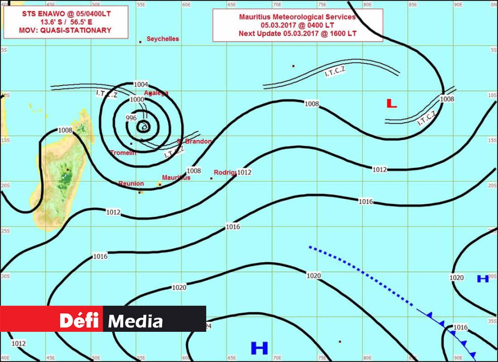 Même si Enawo ne représente pas une menace pour Maurice pour l’heure, les bandes nuageuses externes associées à cette forte tempête tropicale influencent le temps chez nous.