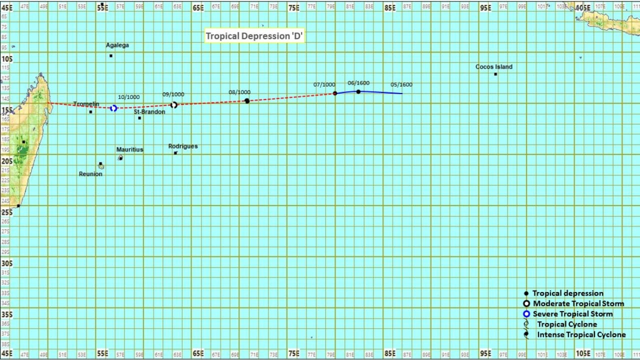 Les modèles numériques indiquent que le système va maintenir sa trajectoire vers l’ouest. De ce fait, la dépression tropicale pourrait s’intensifier davantage en une tempête tropicale modérée en s’approchant de St Brandon.