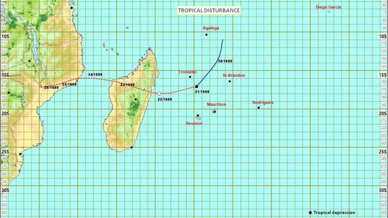 La perturbation tropicale évoluant à l'ouest-sud-ouest de St-Brandon maintient un déplacement dans une direction générale de l'ouest-sud-ouest à environ 25 km/h. Sur cette trajectoire, elle ne devrait pas inquiéter Maurice.