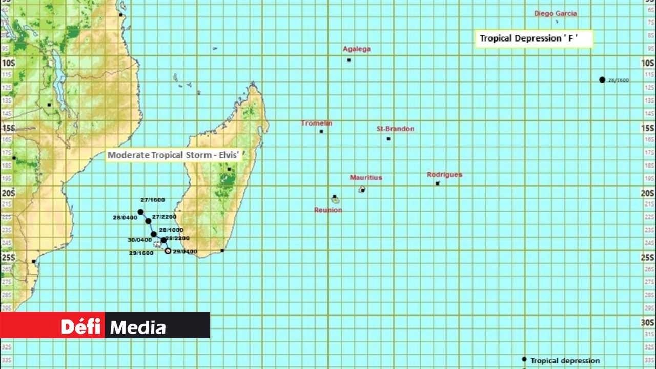 La dépression tropicale qui évoluait au sud-ouest de Madagascar s'est intensifiée en tempête tropicale modérée durant la nuit. Baptisée Elvis par les services météorologiques malgaches tôt ce matin, elle n'influencera pas directement le temps sur les îles Mascareignes. C’est ce qu’indique le bulletin émis par la station météorologique de Vacoas ce matin.
