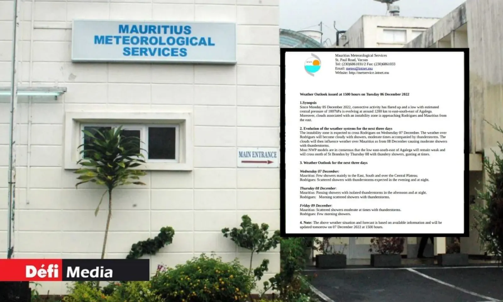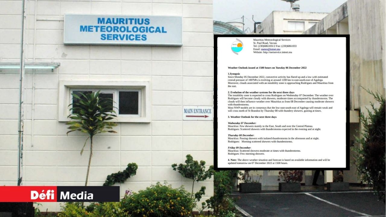 C’est ce qu’indique la station météo de Vacoas dans un communiqué spécial émis ce mardi après-midi, 6 décembre.
