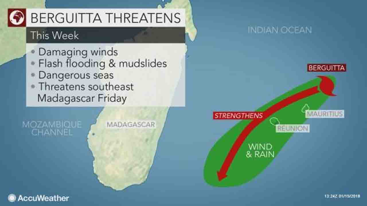 De son côté, la compagnie américaine de prévisions météorologiques, Accu Weather, s’attend à ce que Berguitta continue à se renforcer ce mardi. Selon le météorologue Jason Nicholls, Berguitta pourrait atteindre l’équivalent d’un ouragan de catégorie 4, soit un statut de cyclone tropical très intense. Il prévoit que le temps sera pluvieux à partir de ce soir et que la tempête frappera Maurice et La Réunion avec des vents forts ainsi que des pluies diluviennes mercredi et jeudi.