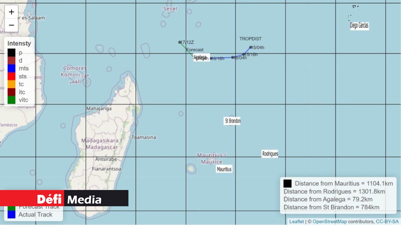 A 04 h 00 ce matin, la basse pression était située à 1 104 km de Maurice.