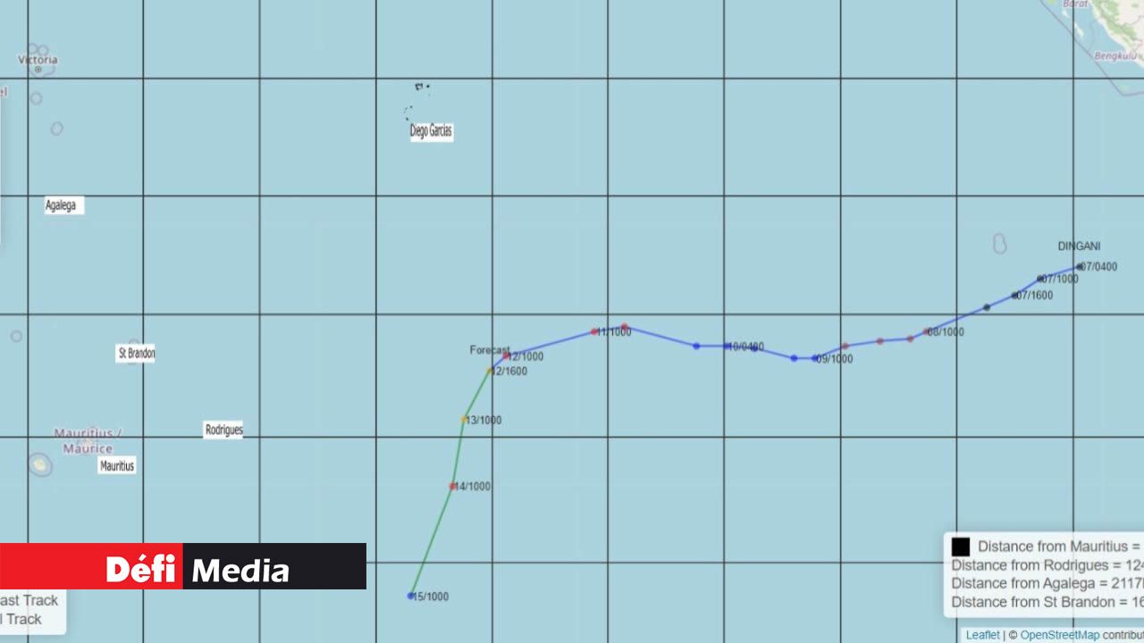 Le cyclone tropical Dingani évolue à environ 1 115 km à l'est-nord-est de Rodrigues. Ce système ne représente pas une menace directe pour les îles des Mascareignes pour l'instant.