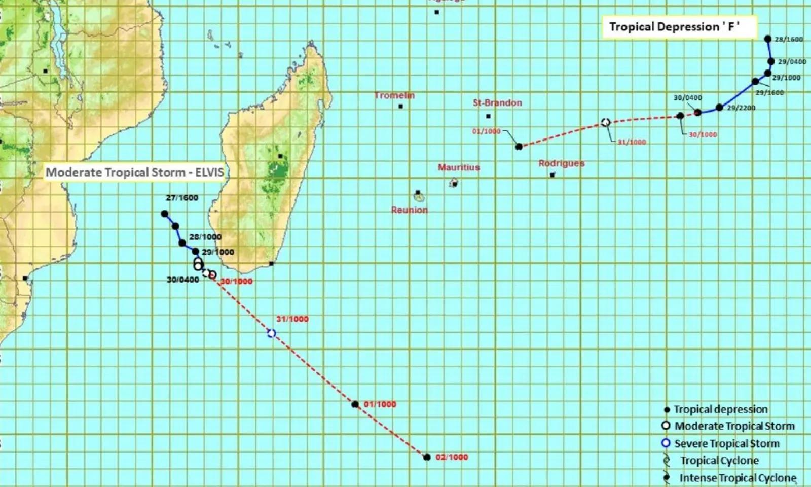 « À 10h00, la dépression tropicale était centrée à environ 890 km à l'est-nord-est de Rodrigues, soit par 16,0 degrés de latitude sud et 70,9 degrés de longitude est. Elle se déplace en direction générale de l'ouest-sud-ouest à environ 20 km/h », indique le service météo.
