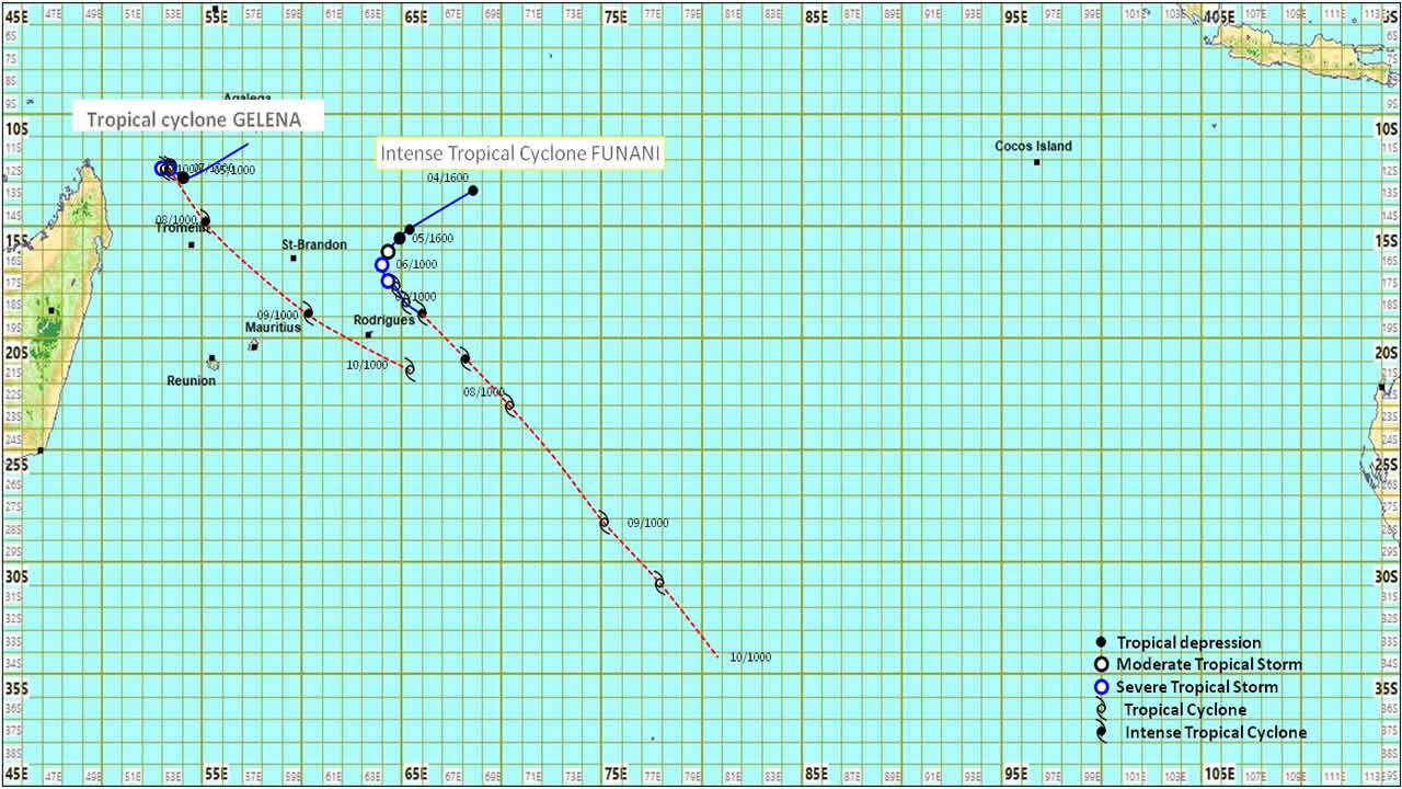 Un avertissement de cyclone de classe 1 est en vigueur à Maurice depuis 04h10 ce vendredi 8 février. Dans son premier bulletin de cyclone, la station météorologique de Vacoas indique qu'à 4 heures ce matin, le cyclone tropical Gelena se trouvait à environ 715 km au nord-nord-ouest de Maurice soit en latitude 14.5 degrés sud et longitude 54.2 degrés est. Il se déplace dans une direction générale du sud-sud-est à environ 10 km/h.