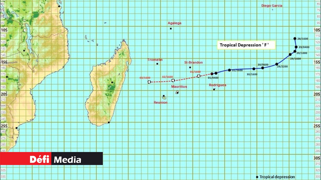 Un avertissement de cyclone de classe I est en vigueur à Maurice. À 04h00, la dépression tropicale était centrée à environ 650 km au nord-est de Maurice, soit en latitude 17.4 degrés sud et longitude 63.0 degrès est. Elle se déplace dans une direction générale de l'ouest-sud-ouest à environ 20 km/h.