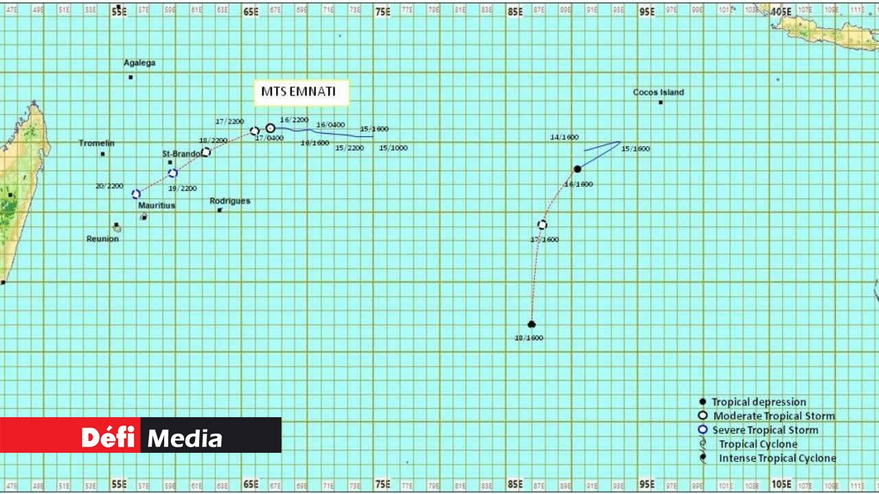 « Emnati évolue maintenant dans une région où elle pourrait s'intensifier davantage. La présence d'Emnati au nord de Rodrigues occasionnera des vents forts, des fortes averses et une mer forte à Rodrigues à partir de cette soirée. Ainsi Emnati représente une menace potentielle pour l'île », indique la station de Vacoas dans son premier bulletin de cyclone pour l’île.