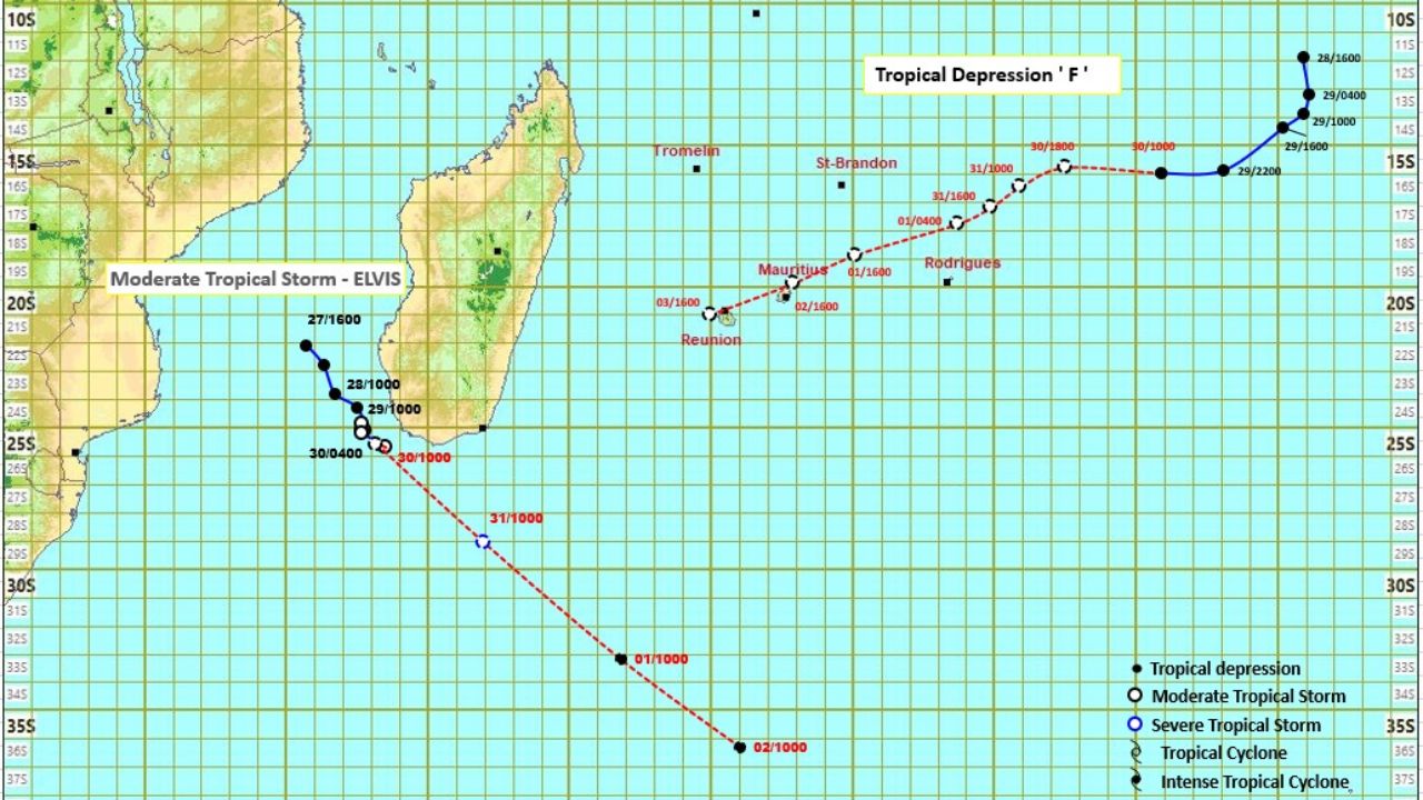 Sur cette trajectoire, le système tropical s'approche de Rodrigues et représente une menace potentielle pour l'île.
