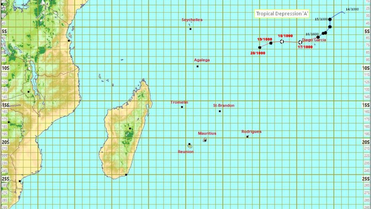 « Au cours de la journée, la dépression tropicale s'est déplacée dans une direction générale du sud-ouest tout en maintenant la même intensité. Elle évolue toujours au nord de Diego Garcia. Toutefois, elle n'influencera pas directement le temps sur les îles des Mascareignes », indique la station météo de Vacoas dans son bulletin des prévisions, émis à 16h30 ce vendredi 16 août.
