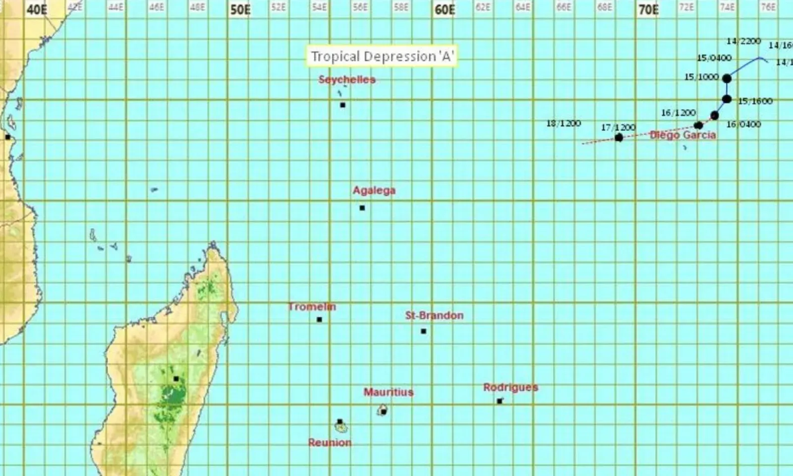 Durant la nuit, la perturbation tropicale qui évoluait loin à l'est-nord-est d'Agalega s'est légèrement intensifiée pour devenir une dépression tropicale. Ce système pourrait encore s'intensifier au cours de la journée. Cependant, il n'influencera pas directement le temps sur les îles des Mascareignes.