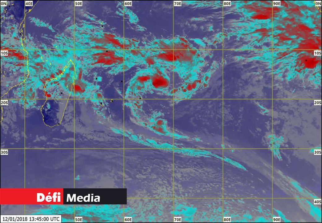 A 10 heures ce matin, elle se trouvait à environ 750 km au nord-est de Rodrigues et se déplace dans une direction générale du sud-ouest à environ 15 km/h. Évoluant dans un environnement favorable, le système devrait s’intensifier. Ainsi, il est fort probable que la zone de basse pression devienne une perturbation tropicale ce vendredi soir.