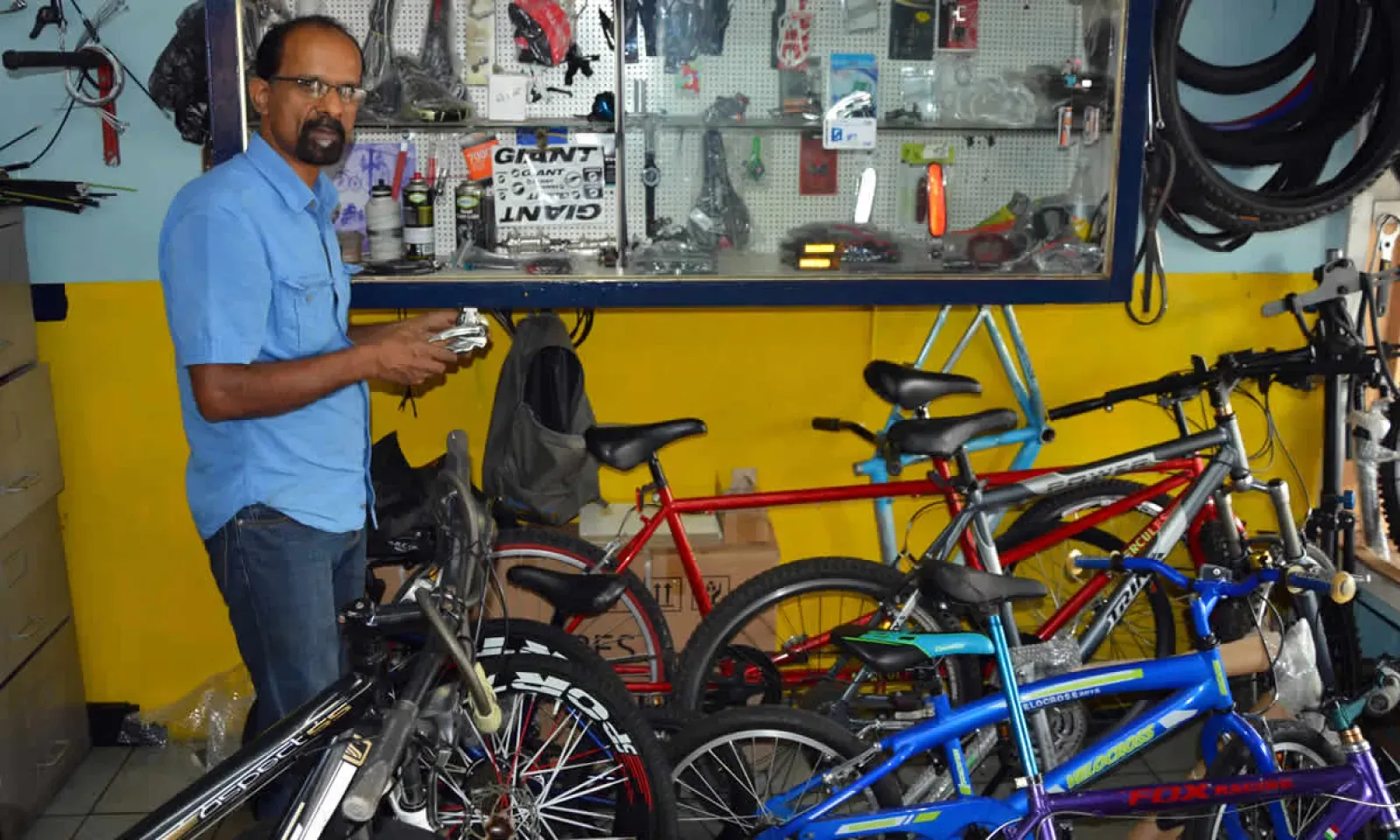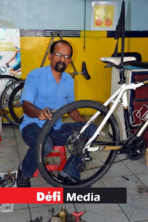 «Nous devons évoluer avec notre temps », affirme Ashok Isnoo. Son atelier, Le vélo, a pignon sur rue à La Caverne, Vacoas. Tout en réparant une bicyclette, il nous parle de son travail.