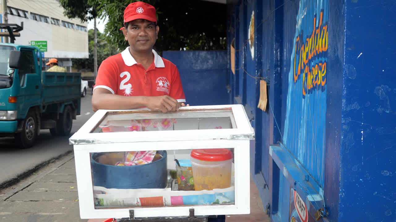 Avec sa malle fixée à l'arrière de sa bicyclette, il était là, debout sous la varangue d'une boutique à Chemin-Grenier à vendre ses rotis servis avec un curry de pomme de terre et une sauce de piment.