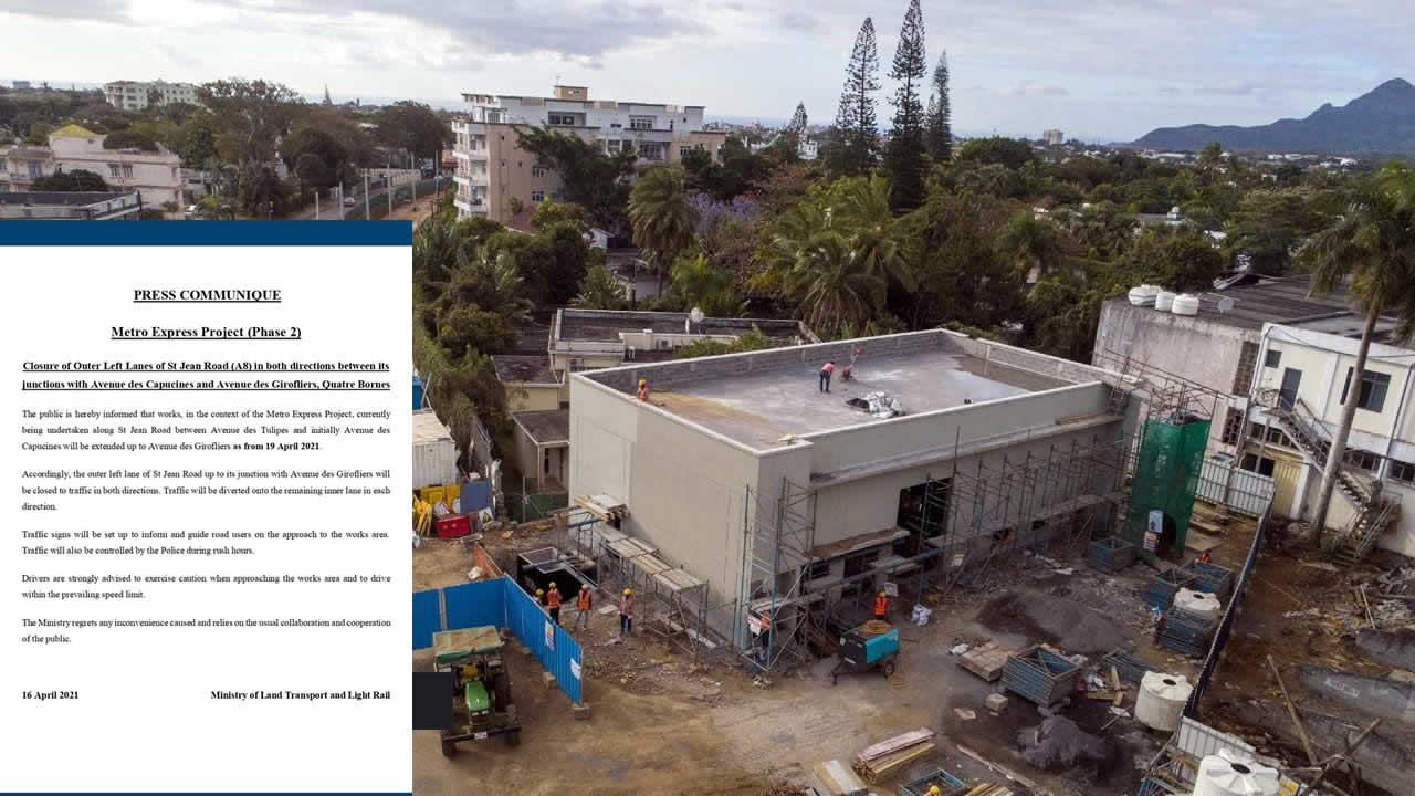 Fermeture des voies extérieures gauches de la route Saint-Jean, à Quatre-Bornes, de l'avenue des Capucines à l'avenue des Girofliers, à partir du lundi 19 avril 2021. La circulation sera déviée sur la voie intérieure restante dans chaque direction, indique le ministère du Transport dans un communiqué, émis ce vendredi 16 avril.