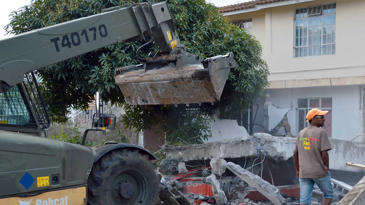 Les pelleteuses de la police accompagnées de la Special Support Unit et de la Special Mobile Force sont descendues tôt à la rue Nelson Mandela. Elles ont frappé aux portes d’une quinzaine de familles pour les informer qu’il fallait évacuer les lieux. Selon un ordre de démolition émis par le ministère du Logement et des Terres, ces structures sont illégales et empiètent sur les terrains appartenant à l’État.