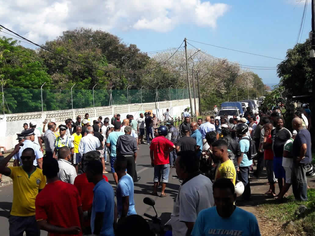 Forte mobilisation policière à Résidences Barkly, Beau-Bassin, ce vendredi matin 1er septembre. Les habitants de cette région étaient nombreux à s’être rassemblés dans la rue pour attendre la décision de la Cour suprême quant à leur demande d’injonction contre le projet Metro Express. Ils contestent la décision des autorités de les sommer de quitter les lieux pour faire place à ce projet.