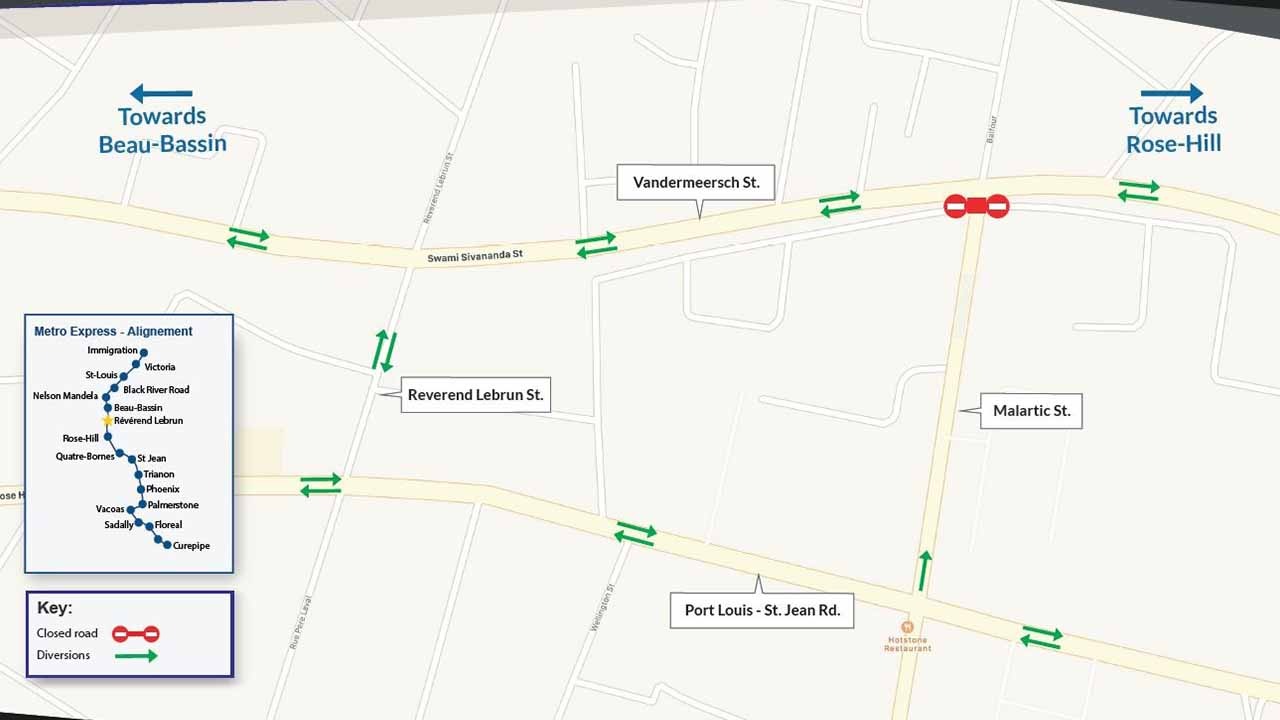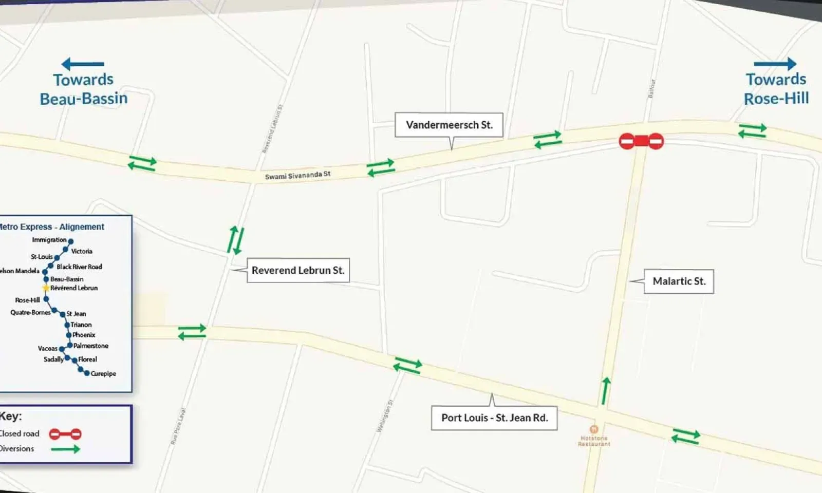 Ceux arrivant de Port-Louis/St Jean Road et se déplaçant vers la rue Vandermeersch, en passant par la rue Malartic, seront pour leur part obligés de prendre la Reverend Lebrun Street pour rejoindre la rue Vandermeersch.