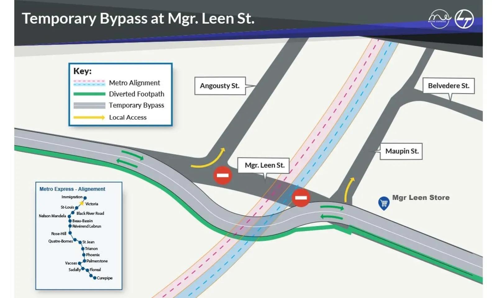 En marge des travaux dans le cadre du projet Metro Express, le trafic routier le long de la rue Monseigneur Leen, Port-Louis, sera dévié sur une nouvelle voie d’accès qui se trouve dans les environs. C’est ce qui ressort d’un communiqué de presse émis par le ministère des Infrastructures publiques, ce vendredi 5 juillet.