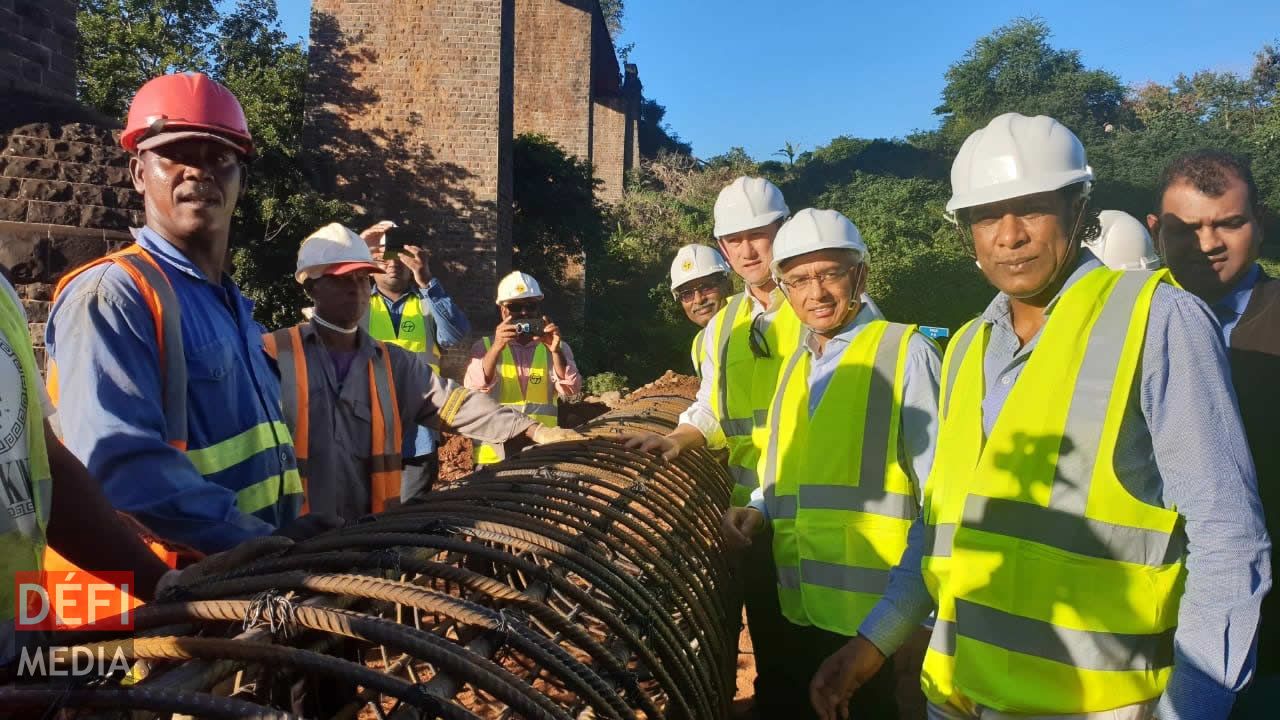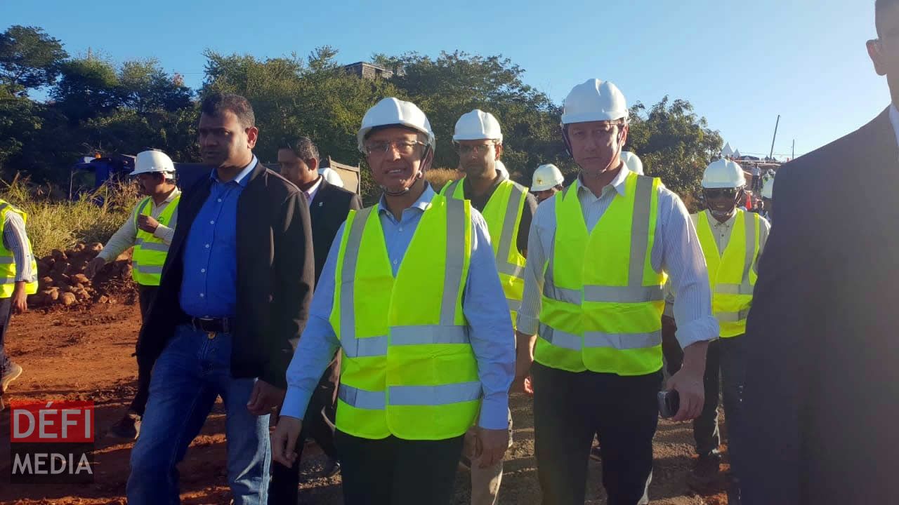 C'est portant casque et vêtu d'un gilet de sécurité fluorescent que Pravind Jugnauth a effectué une «site visit» à Grande-Rivière-Nord-Ouest, où les travaux de construction d'un pont dans le cadre du projet Metro Express ont débuté.