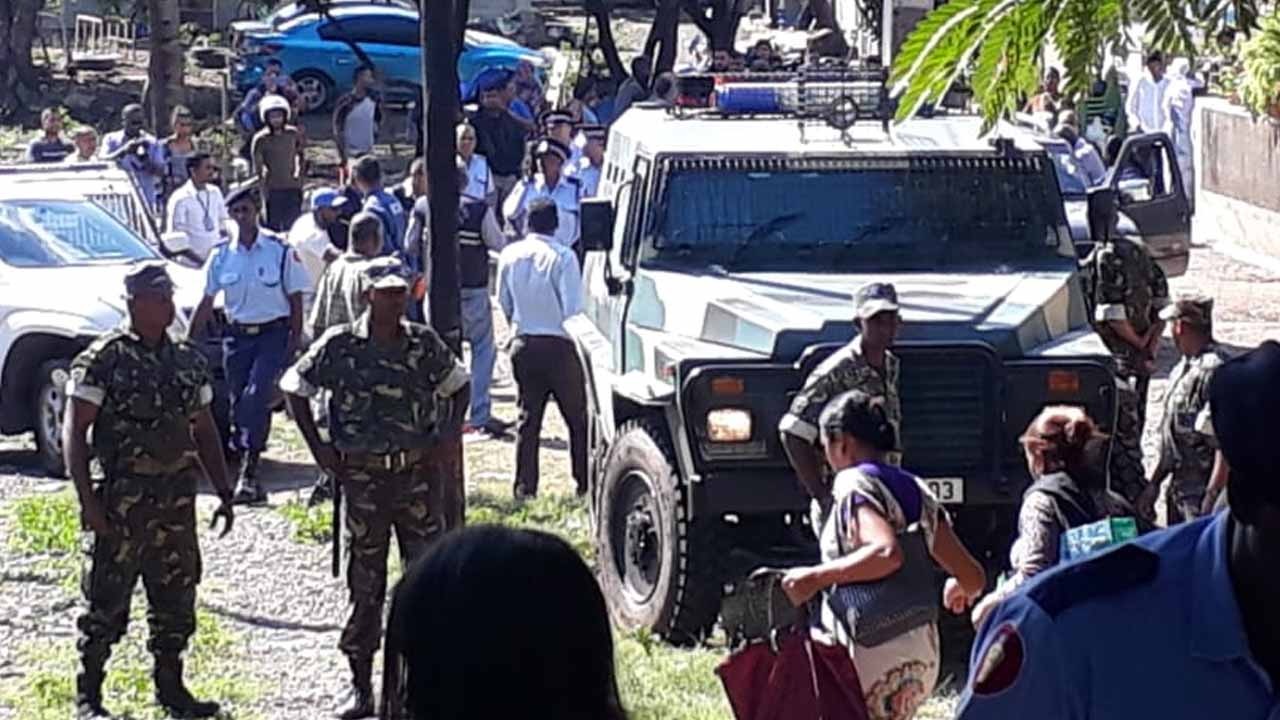 Des éléments de la Special Mobile Force, de la Special Supporting Unit et de la Major Crimes Investigation Team (MCIT) ont eu fort à faire pour éviter tout débordement. Des habitants de la région s'en sont pris aux représentants des forces de l'ordre.