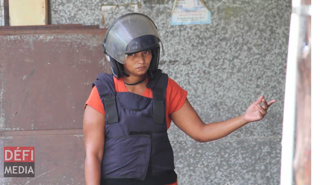 Forte présence policière à Terrasson, Pointe-aux-Sables, ce vendredi 21 avril. Les forces de l’ordre étaient sur le qui-vive pour l’exercice de reconstitution des faits auquel ont participé les quatre suspects arrêtés dans l’enquête sur le meurtre de Kisnamah Ramanjooloo, plus connue comme Tantine.
