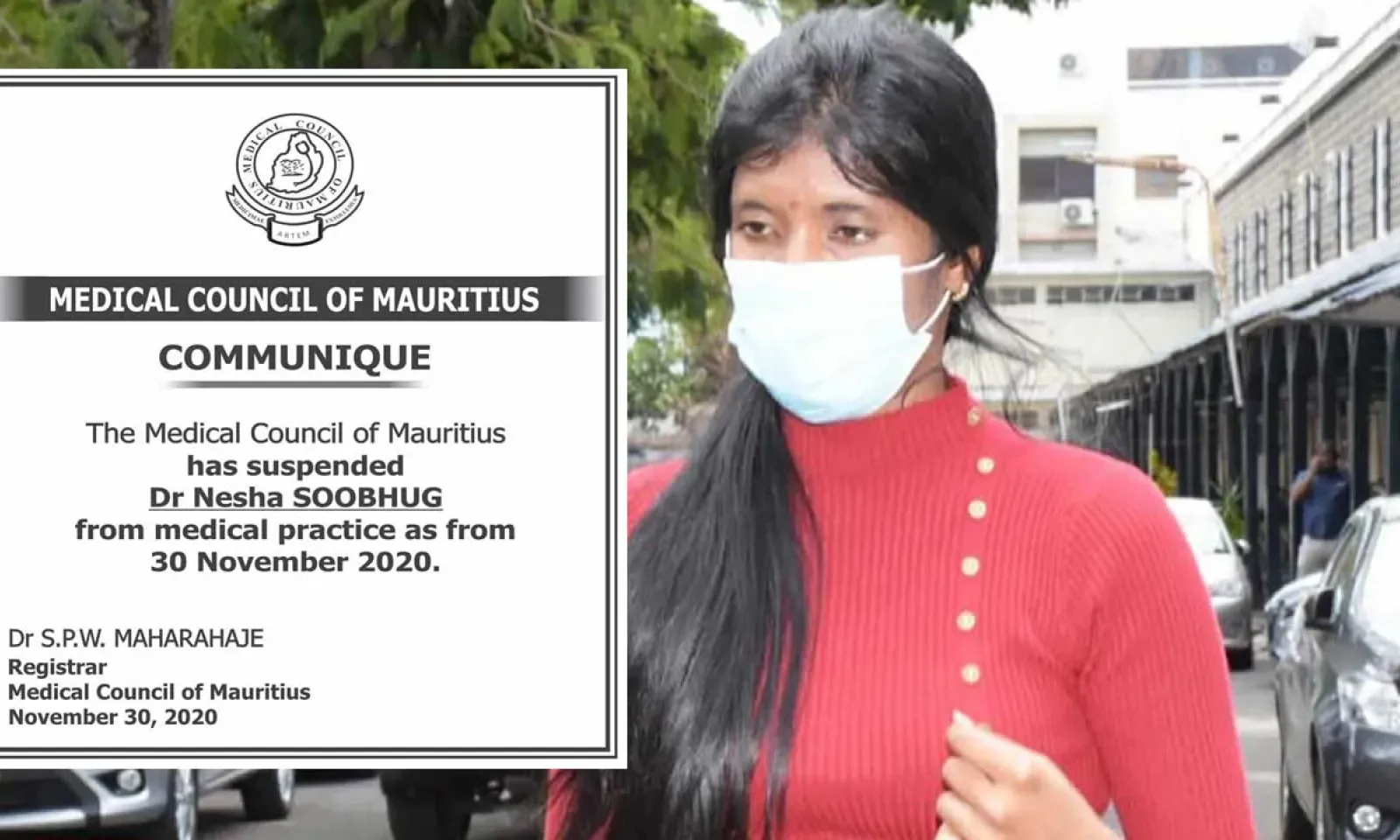 L’affaire a fait grand bruit. La doctoresse Nesha Soobhug a été suspendue par le Medical Council of Mauritius lundi 30 novembre. Elle ne pourra exercer. C'est ce qui ressort d'un communiqué émis par le Medical Council.