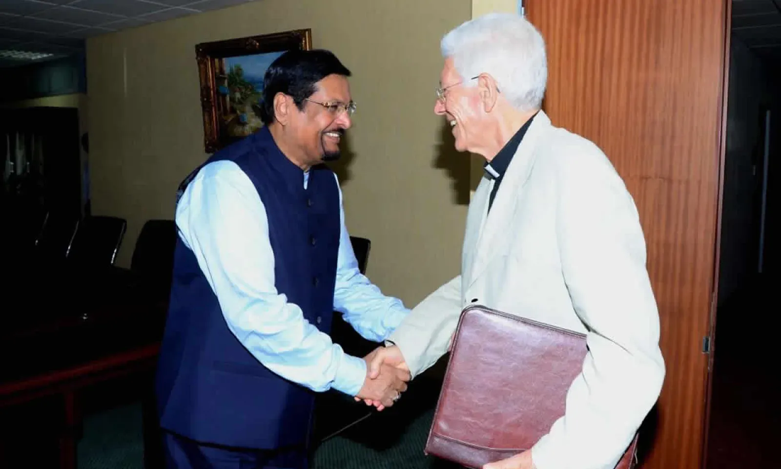 Le vice-Premier ministre et ministre du Logement et des Terres Showkutally Soodhun a reçu à son bureau, ce lundi 24 octobre, l’évêque de Port-Louis, Mgr Maurice E.Piat. Ce dernier sera élevé au rang de cardinal le 19 novembre.