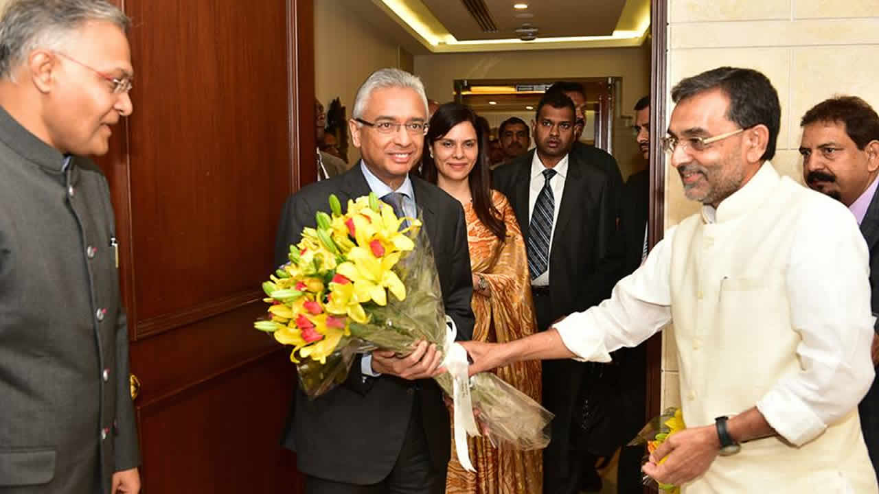 La première journée de visite officielle de Pravind Jugnauth en Inde, vendredi, est qualifiée de « hectique » par son entourage. Dès sa descente, à l’aéroport international Indira Gandhi, à New Delhi, le Premier ministre mauricien a été accueilli par Upendra Kushwaha, ministre d’État chargé du Développement des ressources humaines ; Jagdish Goburdhun, Haut-Commissaire de Maurice en Inde, et Abhay Thakur, haut-commissaire indien basé à Maurice. Il a rencontré d’autres ministres pendant la journée, dont le No 2 du gouvernement indien et ministre des Affaires intérieures, Rajnath Singh et Suresh Prabhu, ministre des Chemins de fer, avec lequel le Metro Express a été abordé. Pour ce projet, l’Inde a fait un don de Rs 10 milliards à Maurice.