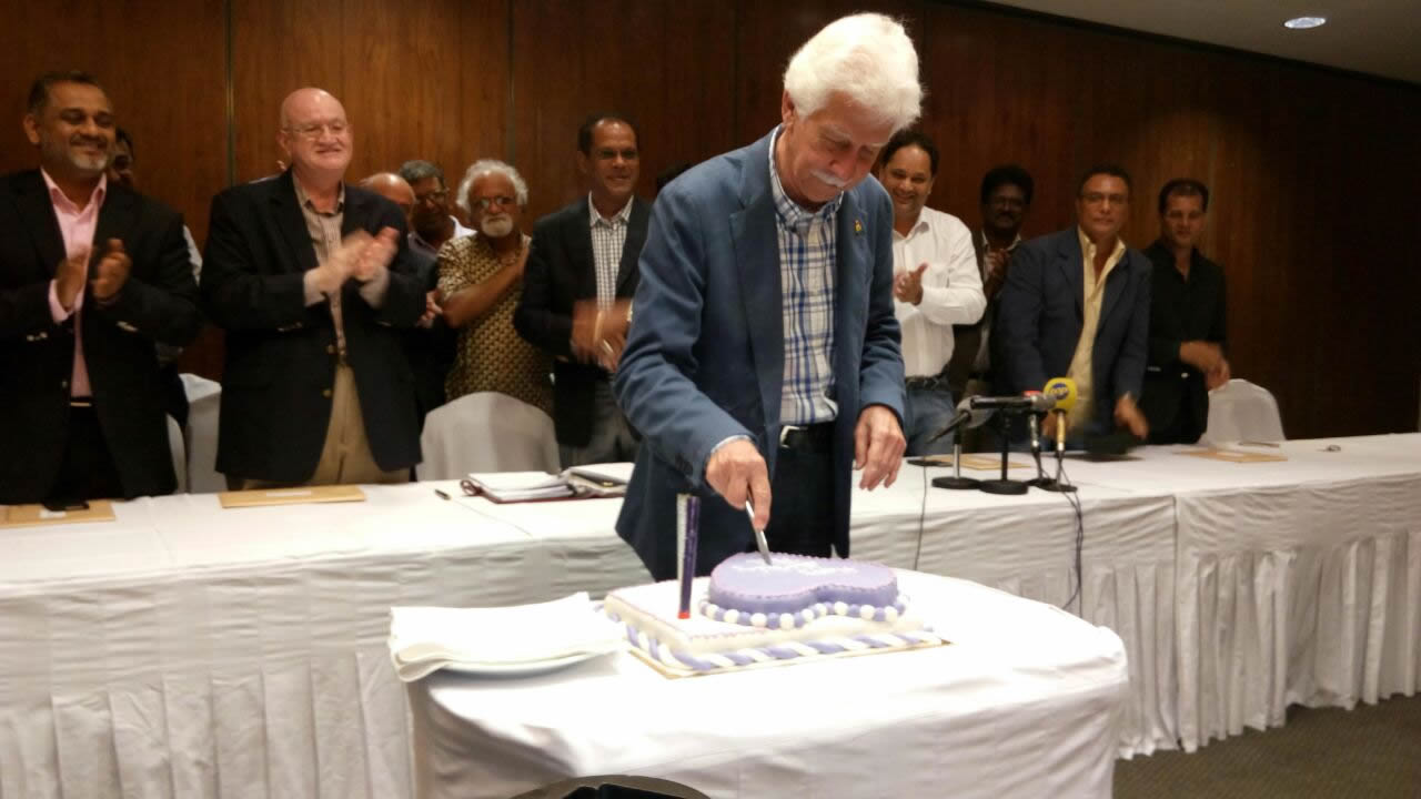 Né le 26 mars 1945, Paul Bérenger souffle ses 71 bougies ce samedi. Le leader de l’Opposition et du MMM a eu droit à une « surprise » à la fin de la conférence de presse qu’il a tenue à la mi-journée à l’hôtel Hennessy Park, à Ébène.