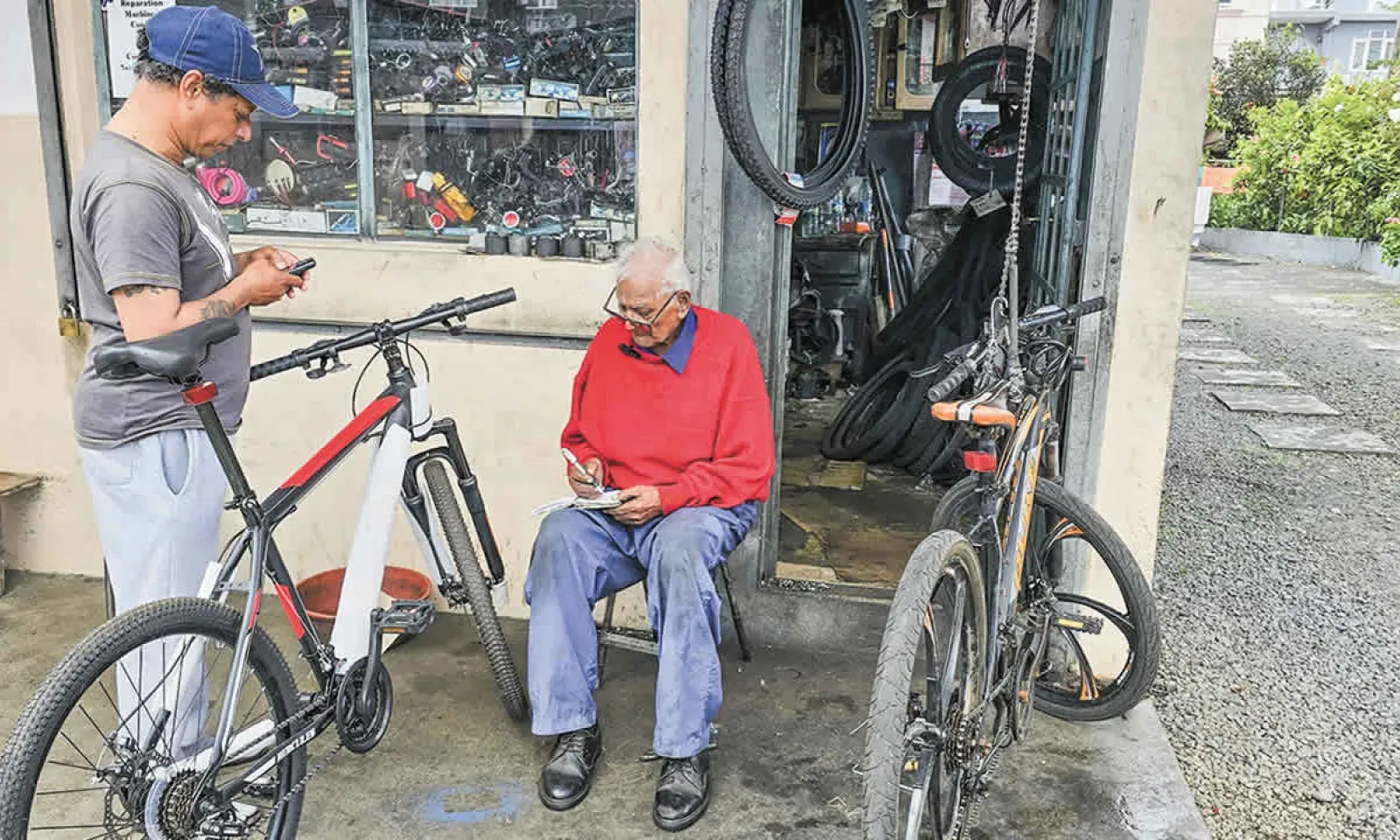 Les notes d’un classique de Bollywood flottent dans l’air. D’une oreille distraite, Mohunlall Goreepersad Ramsurn écoute le morceau. Assis sur une chaise devant son atelier, General Cycle Works, il est concentré. Une bicyclette, suspendue à un crochet par une simple corde, est l’objet de toute son attention. Ses mains manipulent tournevis et clés avec dextérité, faisant mentir son âge avancé. À 98 ans, il continue de réparer les vélos avec la même passion qu’au premier jour.