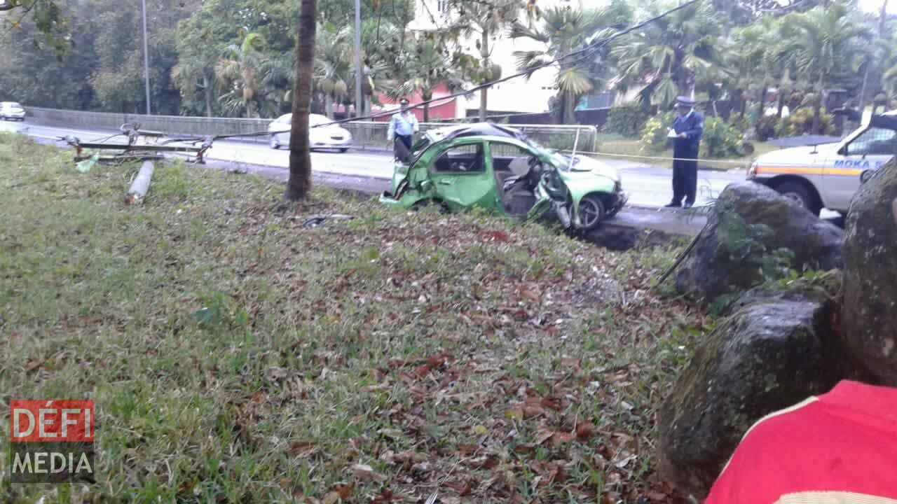 Cet accident de la route s’est produit ce dimanche matin 13 novembre à Moka, non loin du collège MGI (Mahatma Gandhi Institute). Une voiture a subi de gros dégâts matériels après avoir percuté un pylône du Central Electricity Board (CEB).