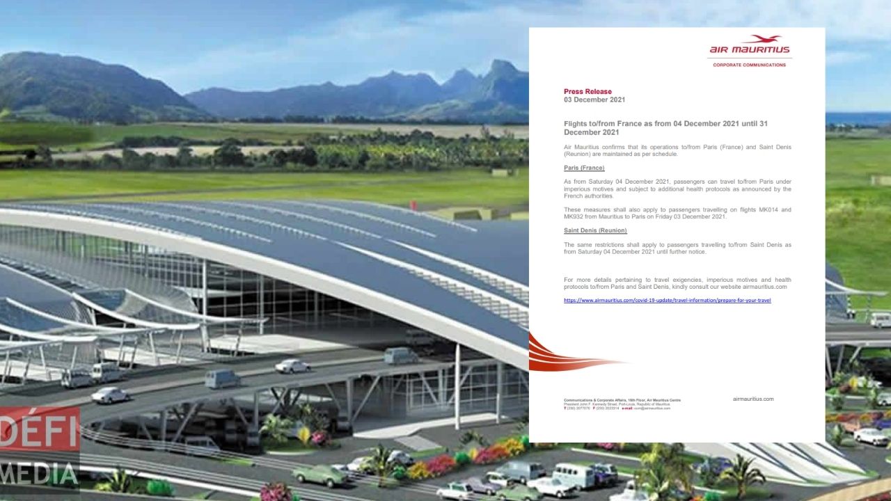 Air Mauritius confirme que ses opérations pour la France et la Réunion du 4 décembre au 31 décembre sont maintenues. C'est ce qui est indiqué dans un communiqué,