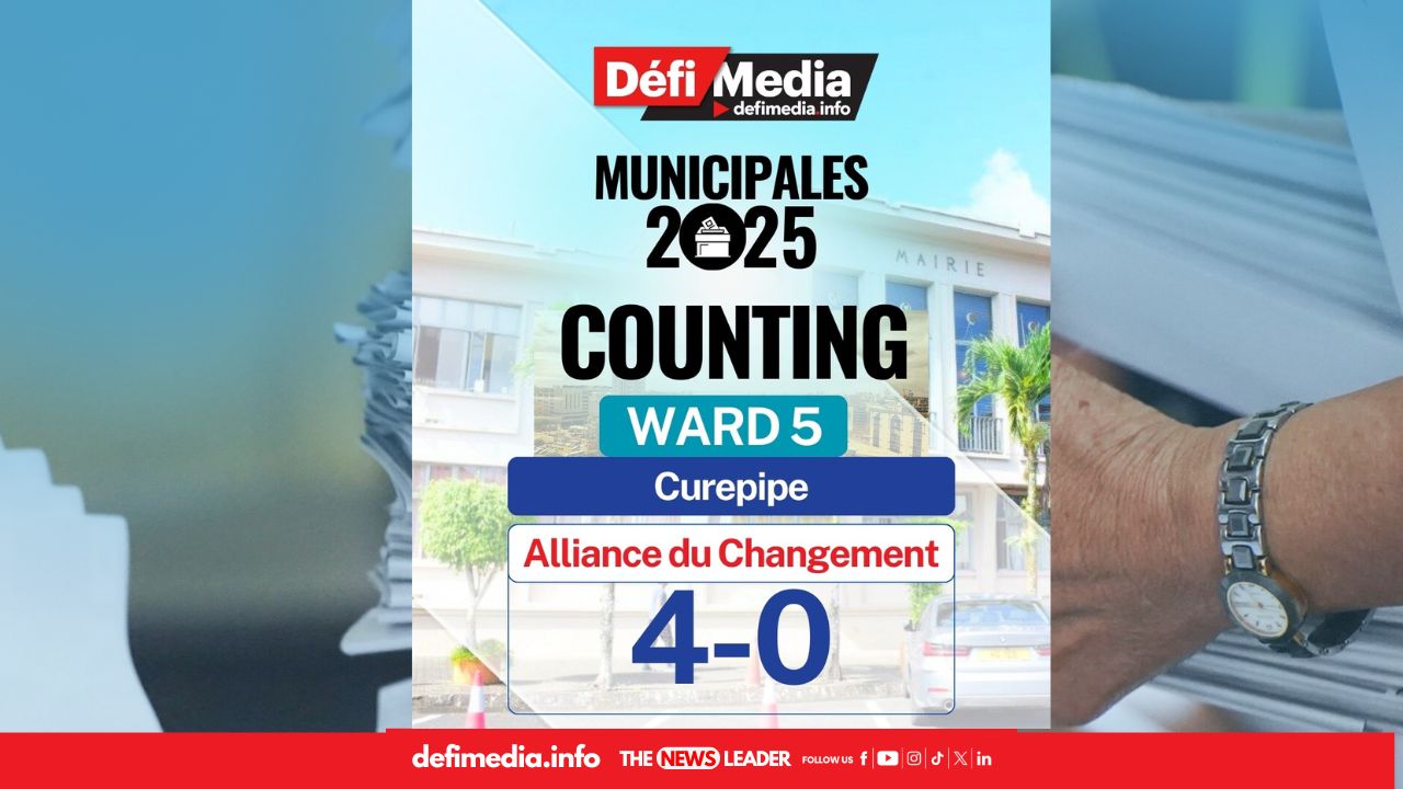 Les résultats du Ward 5 de Curepipe viennent de tomber : les quatre candidats de l’Alliance du Changement remportent tous les sièges en jeu. Ils sont :