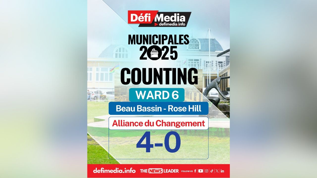 Les résultats du Ward 6 à Beau-Bassin/Rose-Hill viennent de tomber : les quatre candidats de l’Alliance du Changement remportent tous les sièges en jeu.