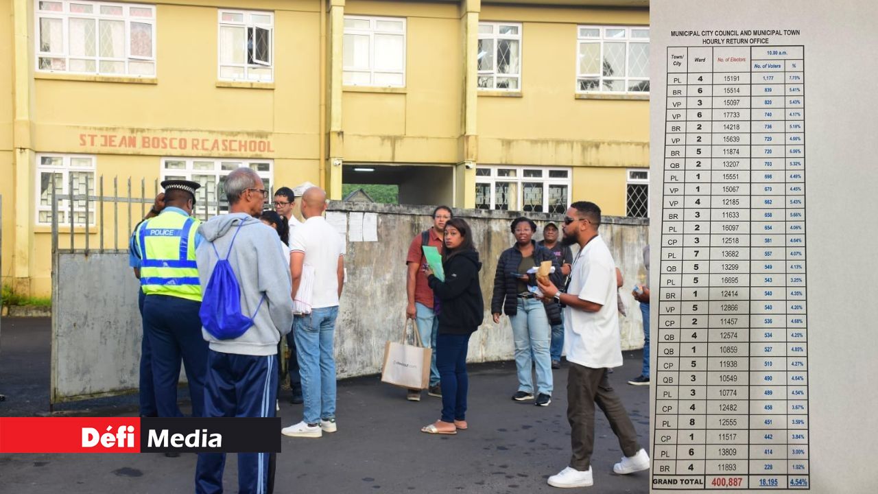 Trois heures après l’ouverture des centres de vote pour les élections municipales, le taux de participation était relativement faible. À 10 h, 18 195 citadins sur les 400 887 inscrits avaient accompli leur devoir civique, ce qui représente un taux de 4,54 %.